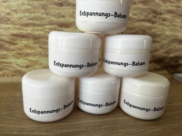 Entspannungsbalsam dient der körperlichen und seelischen Erholung, indem er Spannungen löst, Stress abbaut und beruhigend auf Körper und Geist wirkt. Wird oft bei Unruhe, Nervosität oder zur Unterstützung des Einschlafens auf Nacken, Schläfen oder Brust aufgetragen. Zudem pflegt er die Haut und lindert oft Muskelverspannungen.
